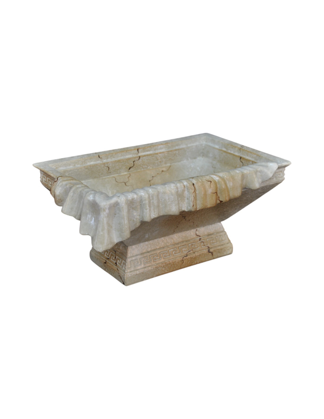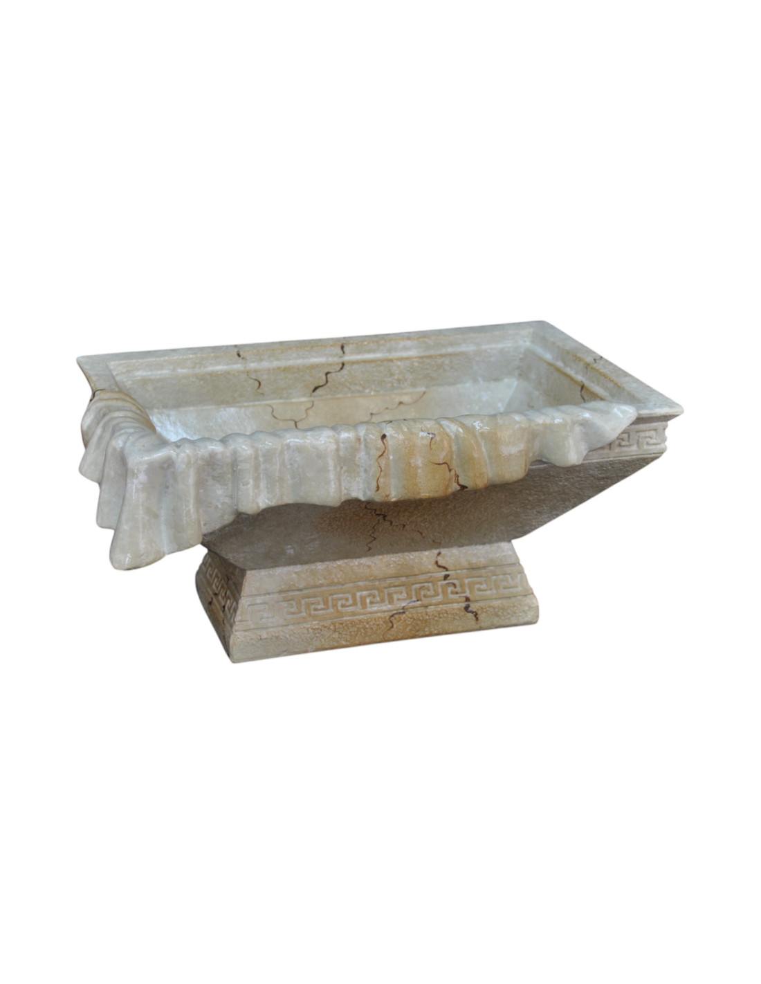 Dekoracyjna prostokątna waza z rzeźbioną szarfą w stylu antycznego marmuru, H:0,39m