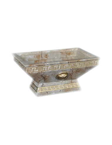 Prostokątna waza przypominająca marmur z motywem Meduzy i złotymi wstawkami w stylu antycznej Grecji, H:0,39m