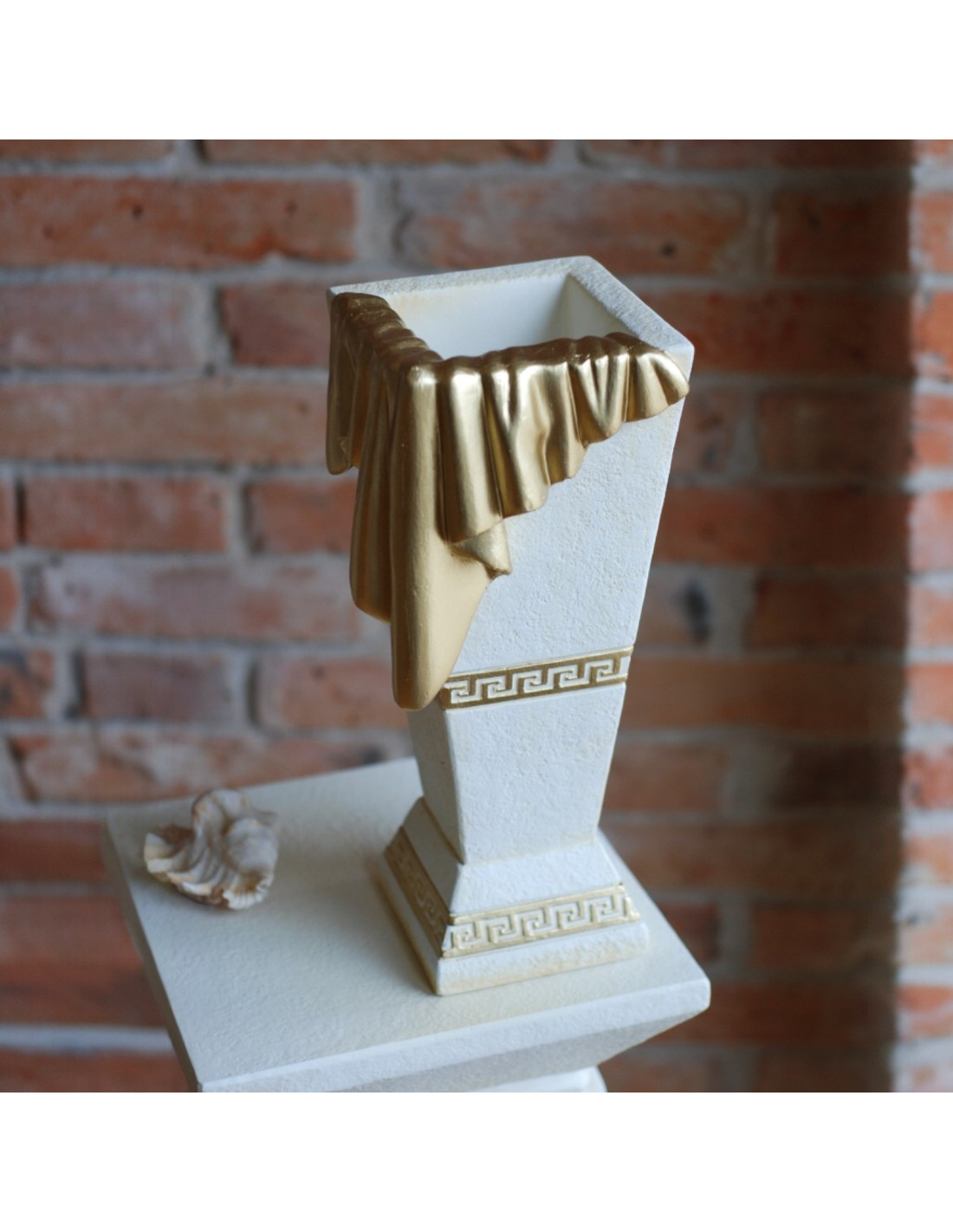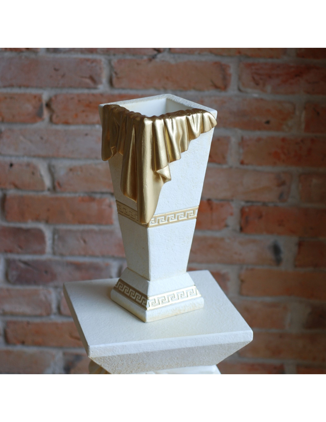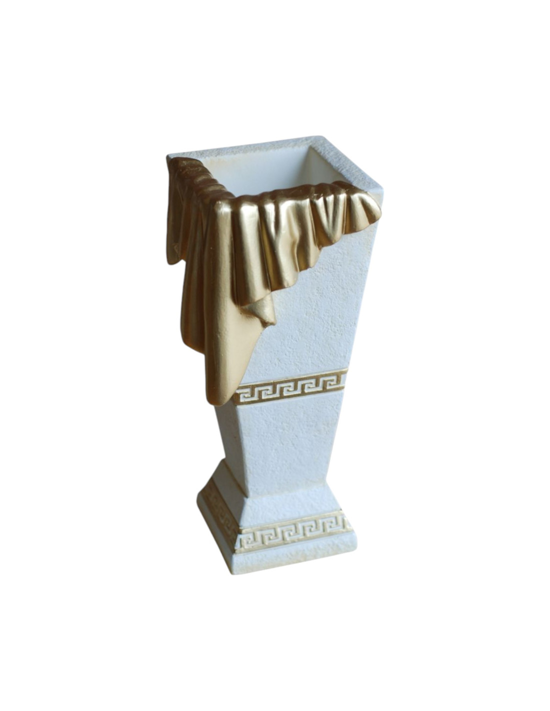 Biały wazon ze złotymi draperiami i wstawkami w greckim stylu, H:0,37m