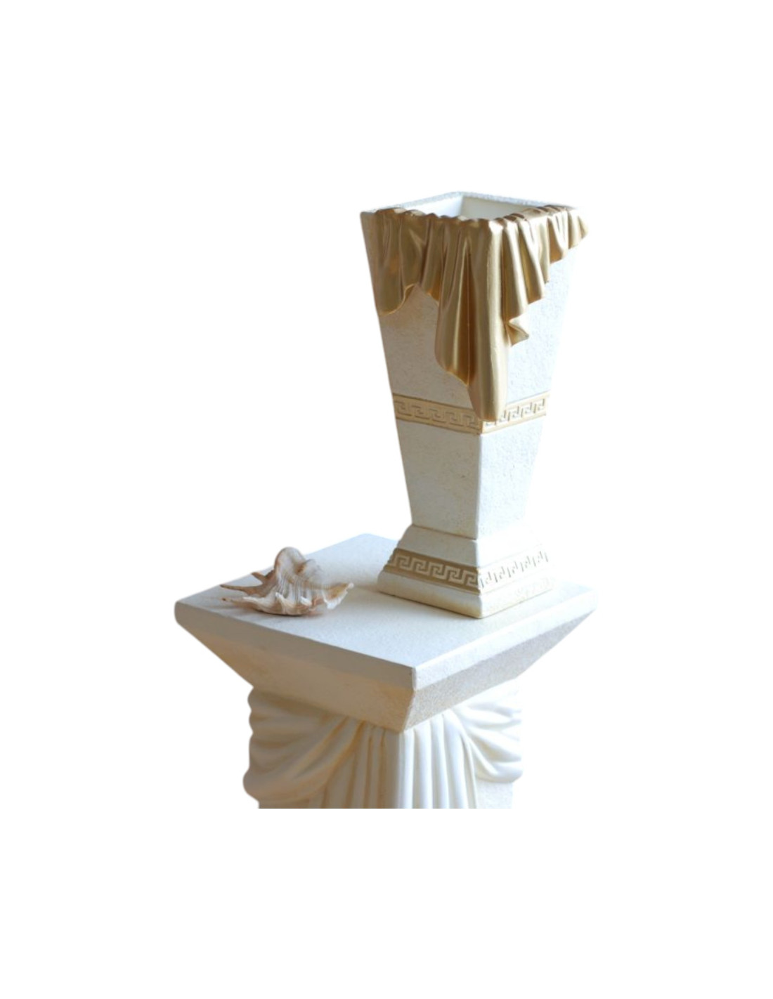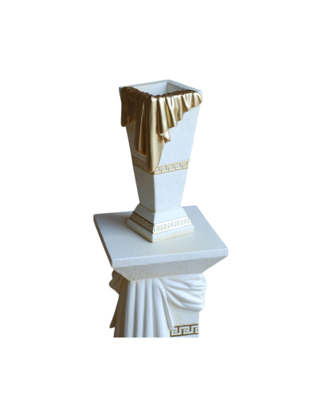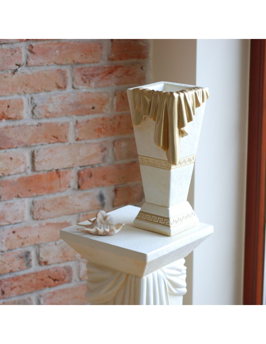 Biały wazon ze złotymi draperiami i wstawkami w greckim stylu, H:0,37m