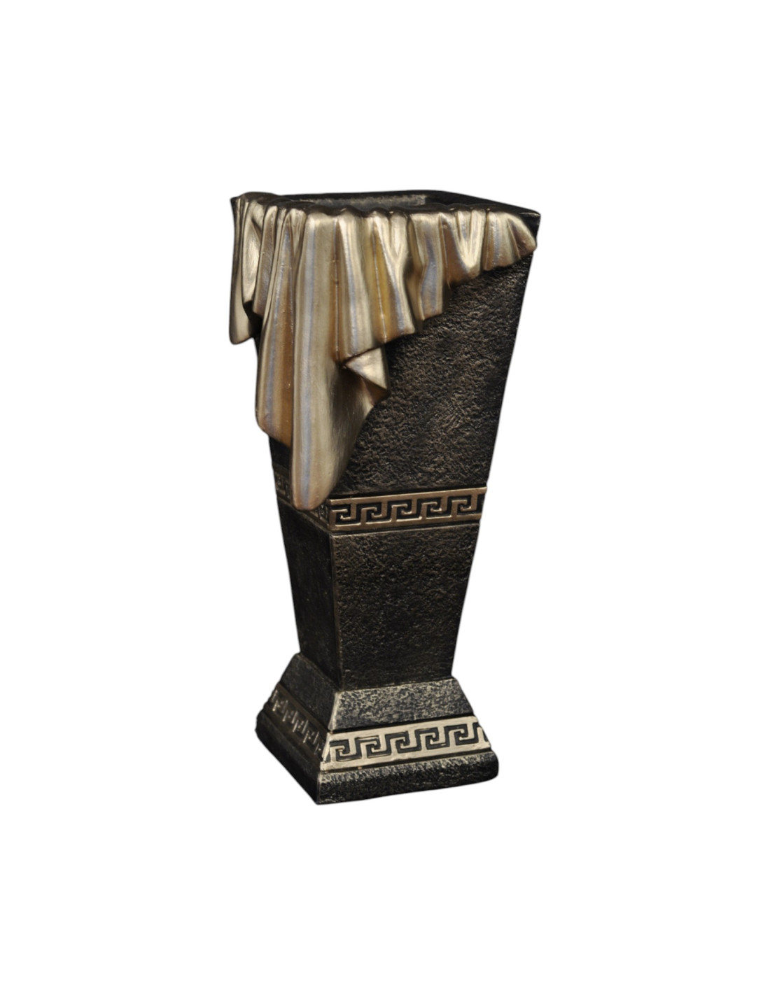 Czarny wazon ze złotymi draperiami i wstawkami w greckim stylu, H:0,37m