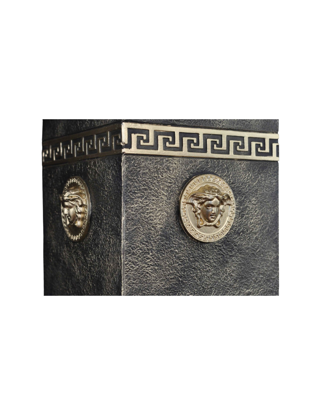 Zdobiona greckimi ornamentami oraz eleganckimi złotymi medalionami, doskonale komponuje się w przestrzeniach urządzonych w stylu klasycznym, glamour lub antycznym. Jej subtelnie popękana faktura i marmurowe wykończenie nadają jej wyjątkowego charakteru, a solidna konstrukcja zapewnia trwałość i stabilność.
