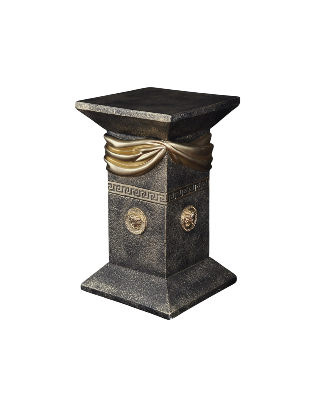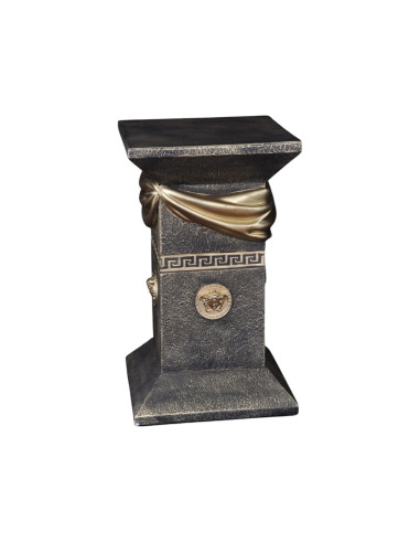 Elegancka czarna grecka kolumna z szarfą, ozdobnymi talarami i złotymi wstawkami, H:0,55m