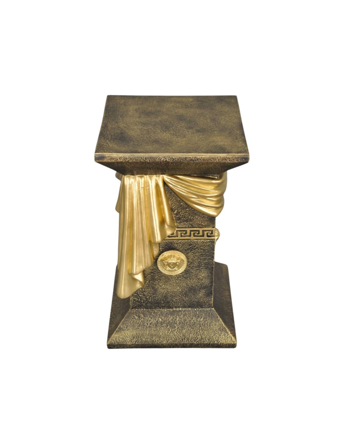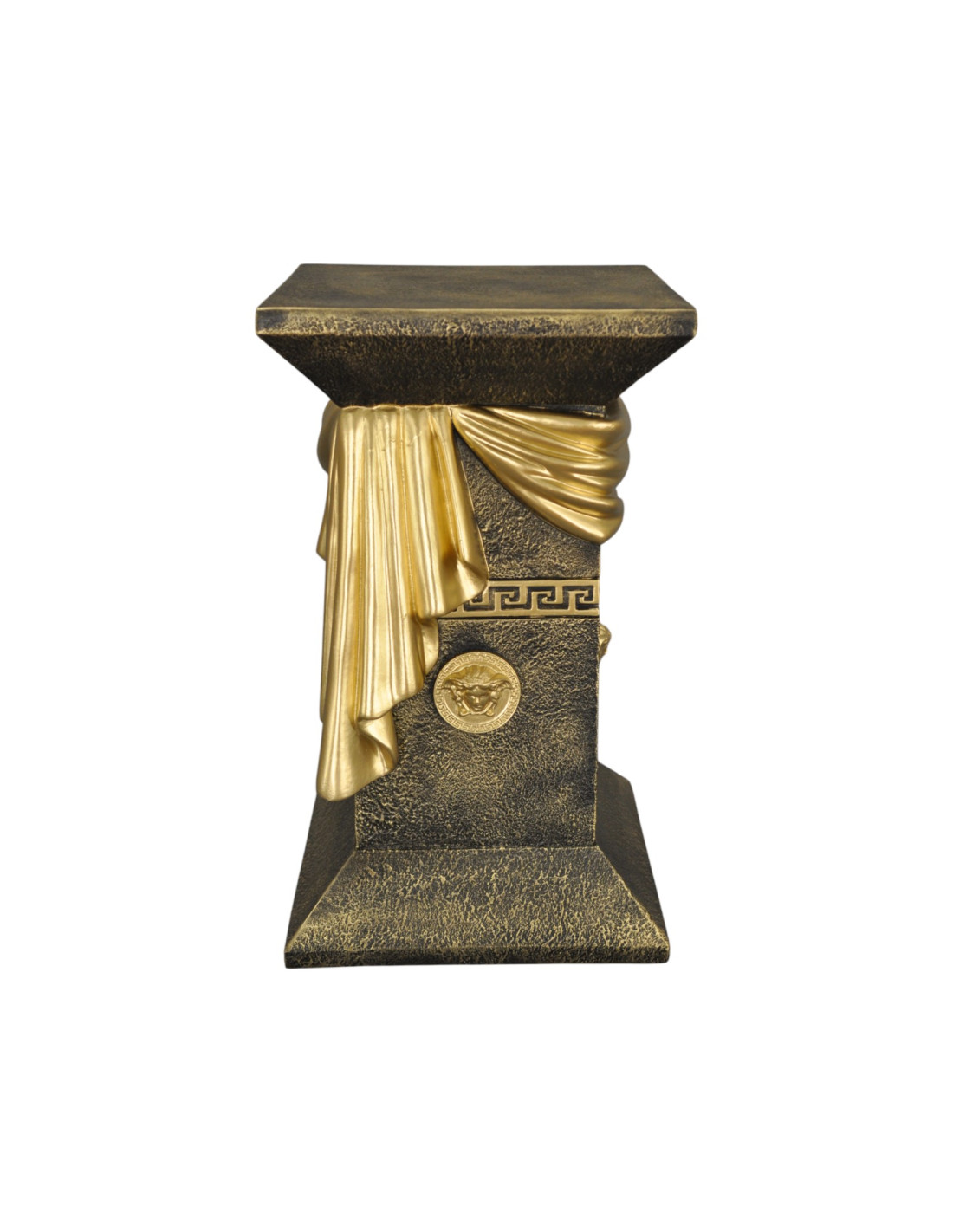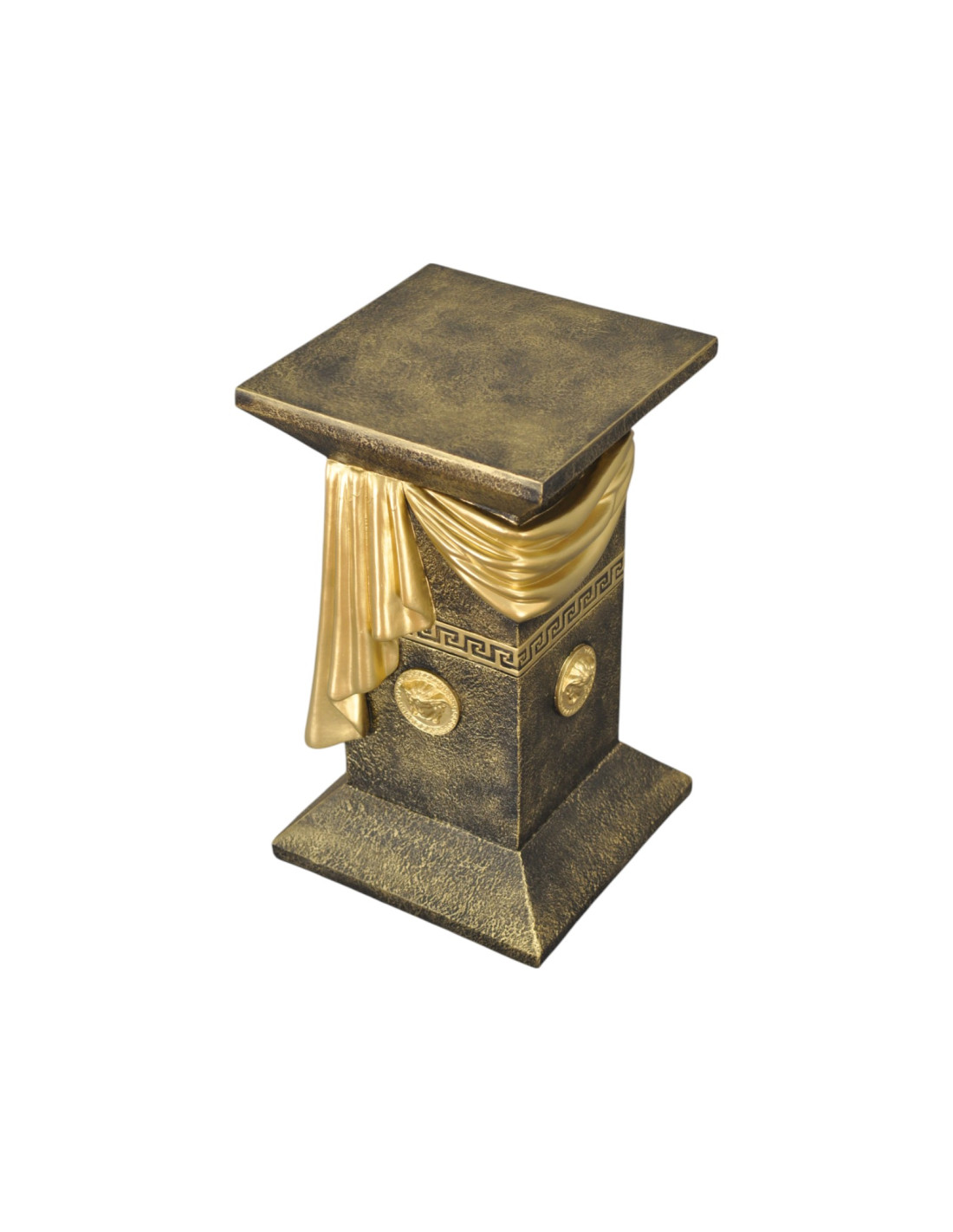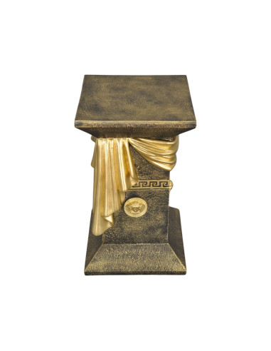 Elegancka czarna grecka kolumna a'la marmur z szarfą, ozdobnymi talarami i złotymi wstawkami, H:0,55m