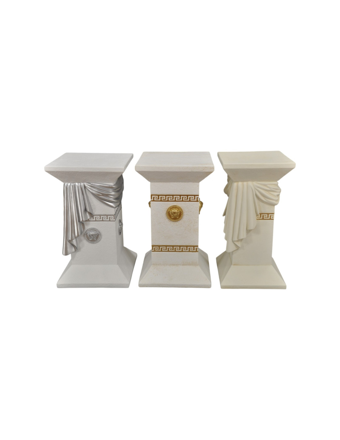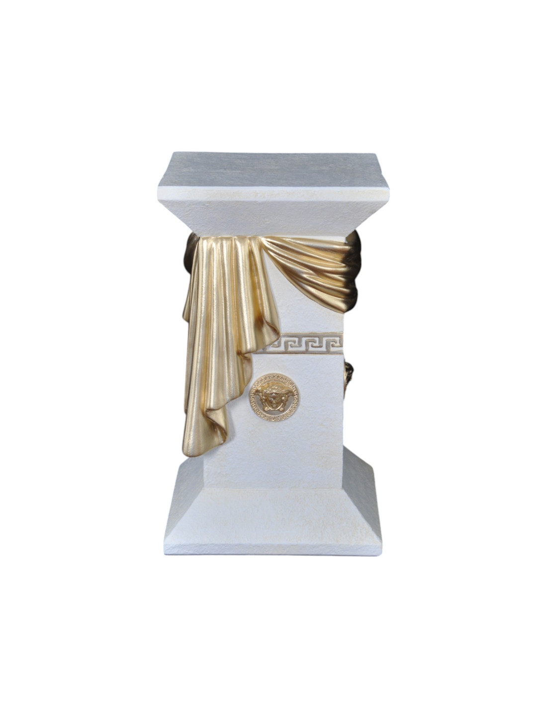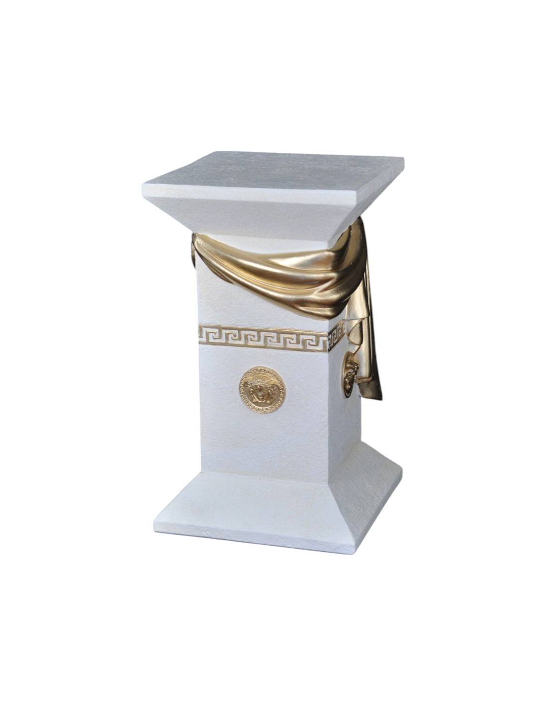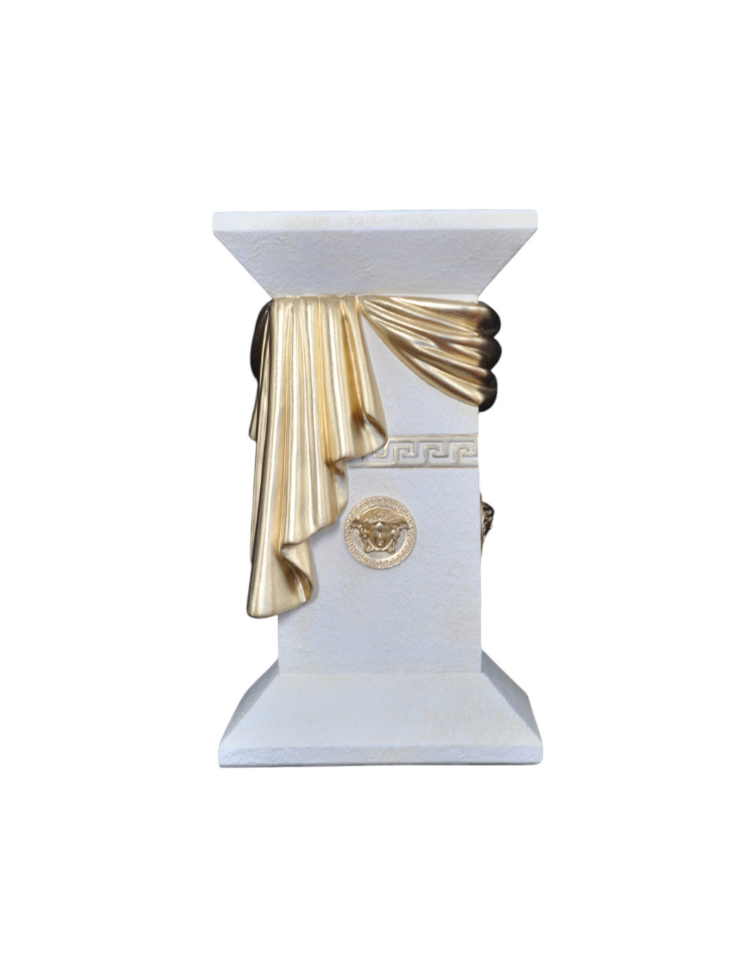 Elegancka biała grecka kolumna z szarfą, ozdobnymi talarami i złotymi wstawkami, H:0,55m