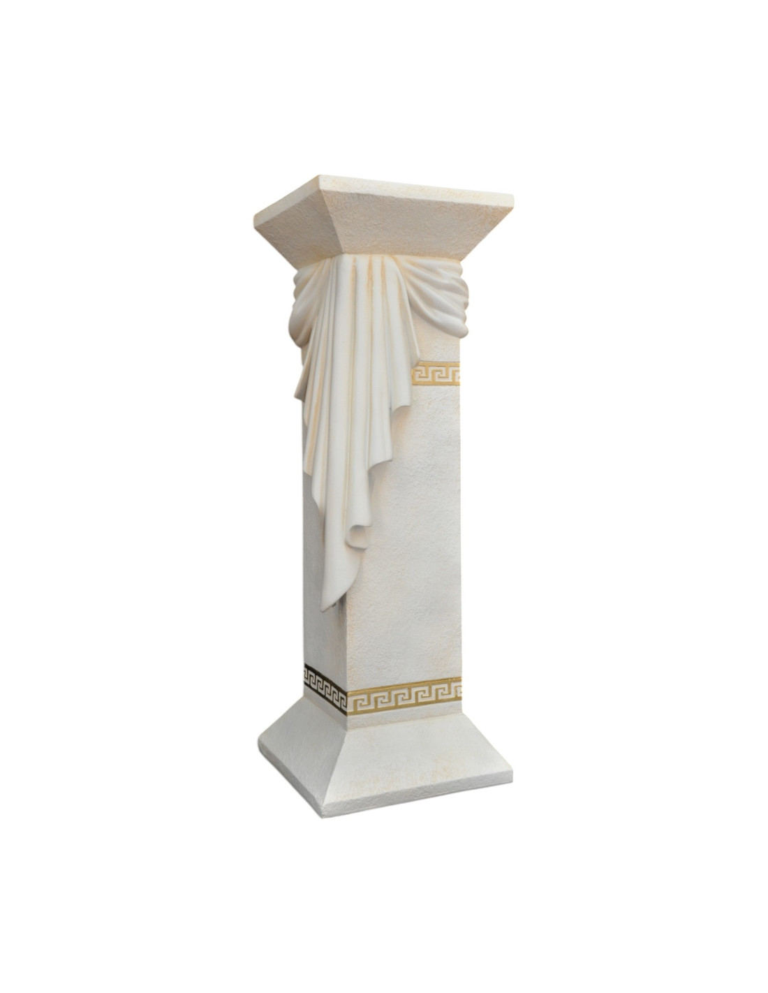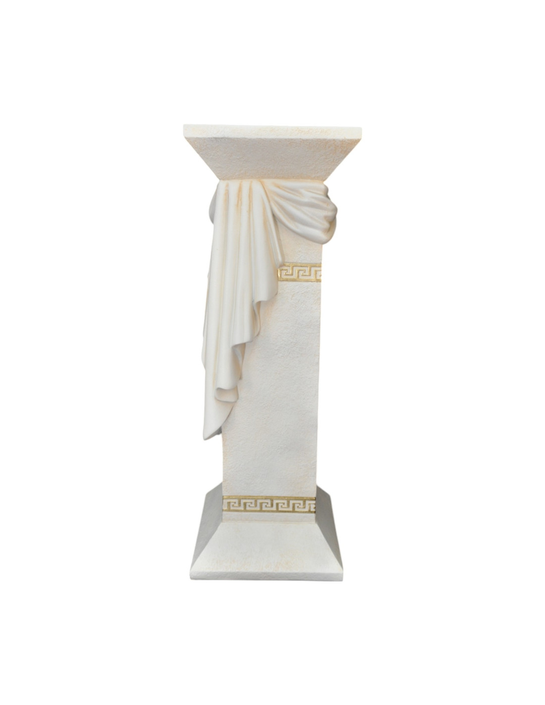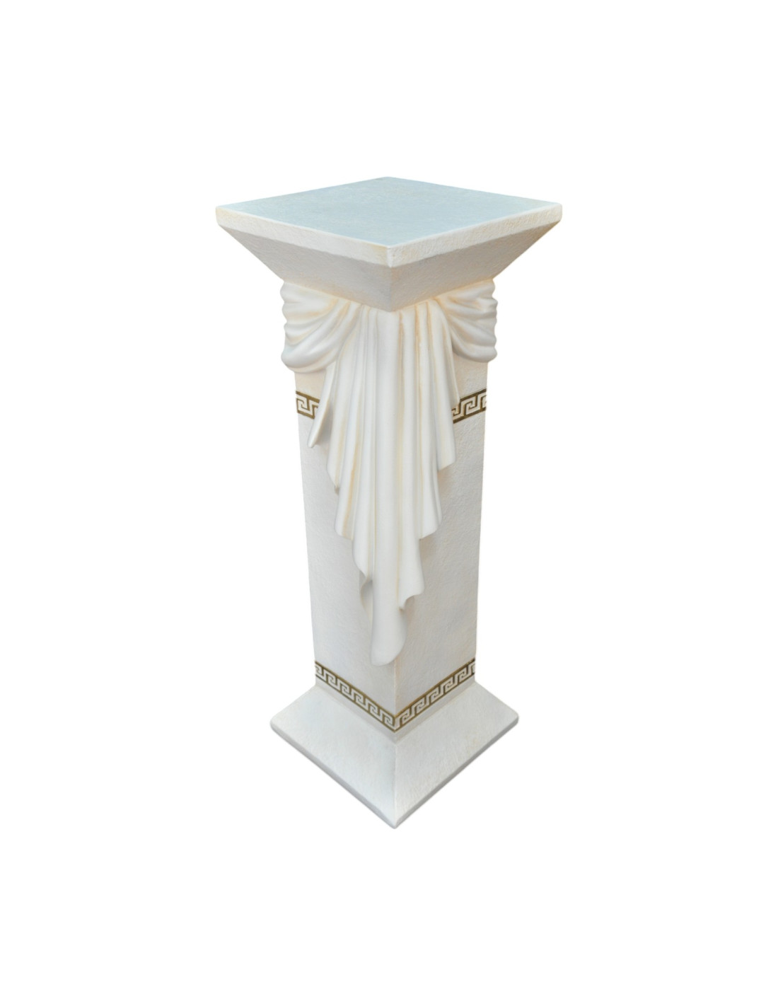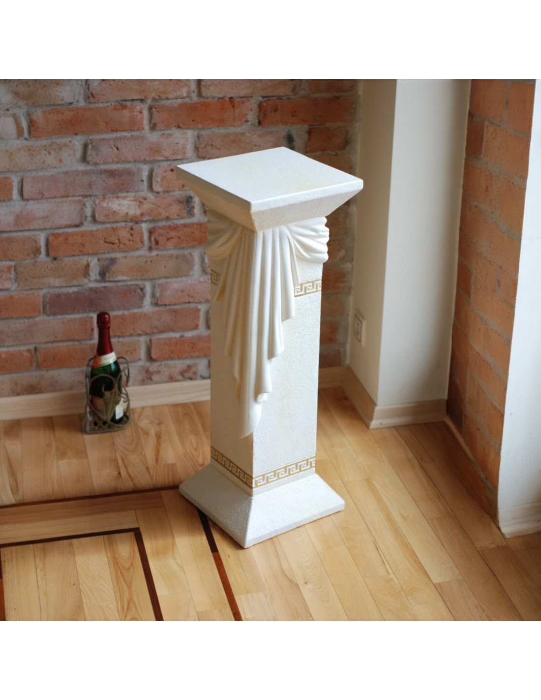 Kolumna doskonale komponuje się zarówno z tradycyjnymi, jak i nowoczesnymi wnętrzami. Dodatkowe zdobienie w formie szarfy nadaje jej lekkości oraz ekskluzywnego wyglądu, przywodząc na myśl dekoracyjne elementy świątyń starożytnej Grecji. Sprawdzi się jako elegancka podstawa pod rzeźby, donice czy inne dekoracje. Może być wykorzystywana zarówno w domowych wnętrzach, jak i w stylowych przestrzeniach barowych. To doskonały wybór dla miłośników klasycznego designu oraz elementów wystroju z nutą historii.