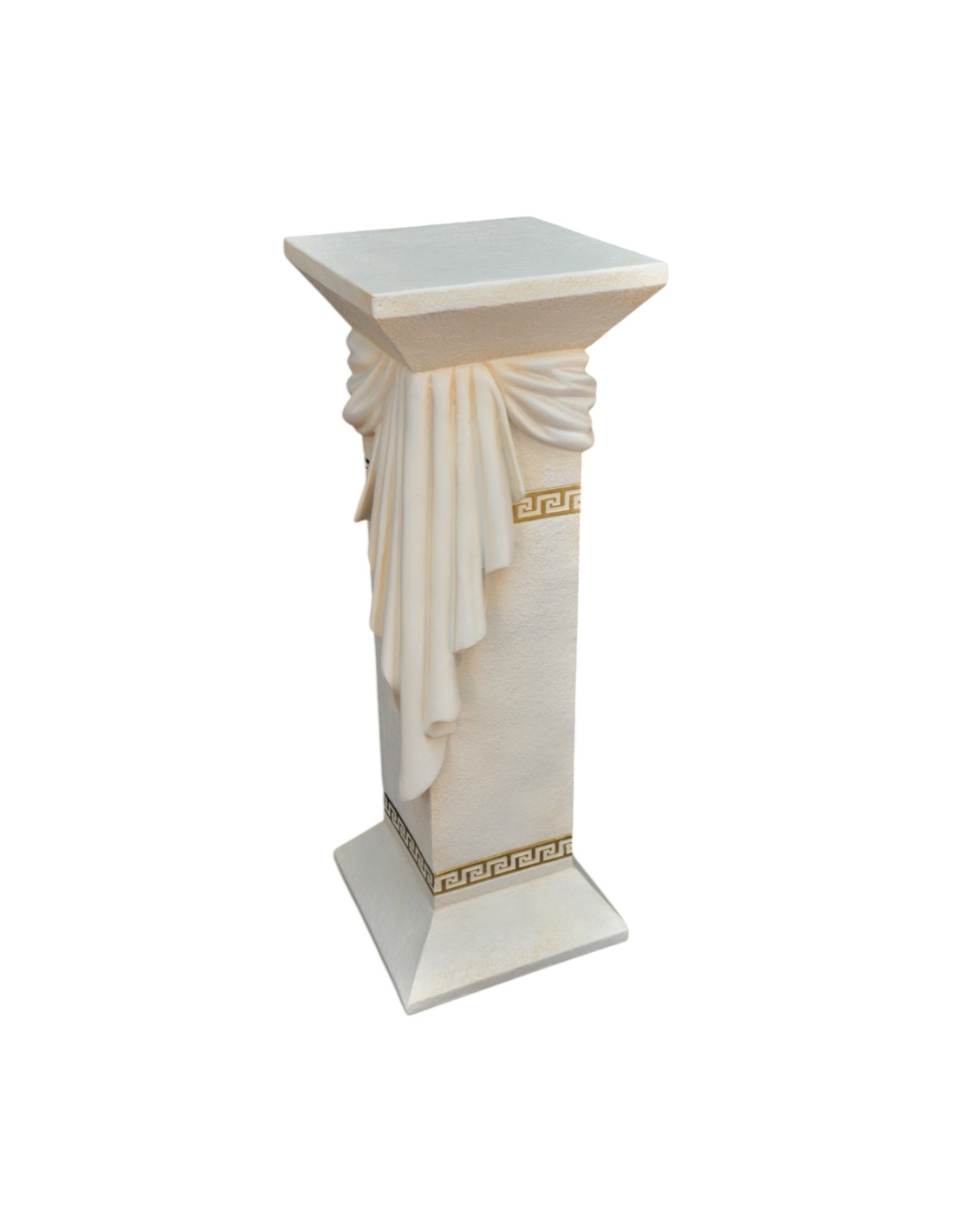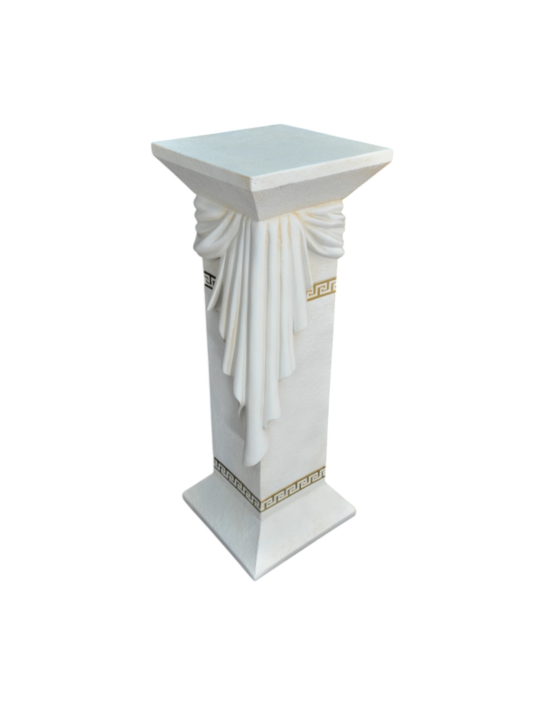 Biała grecka kolumna z ozdobną szarfą i złotymi wstawkami, H:0,8m