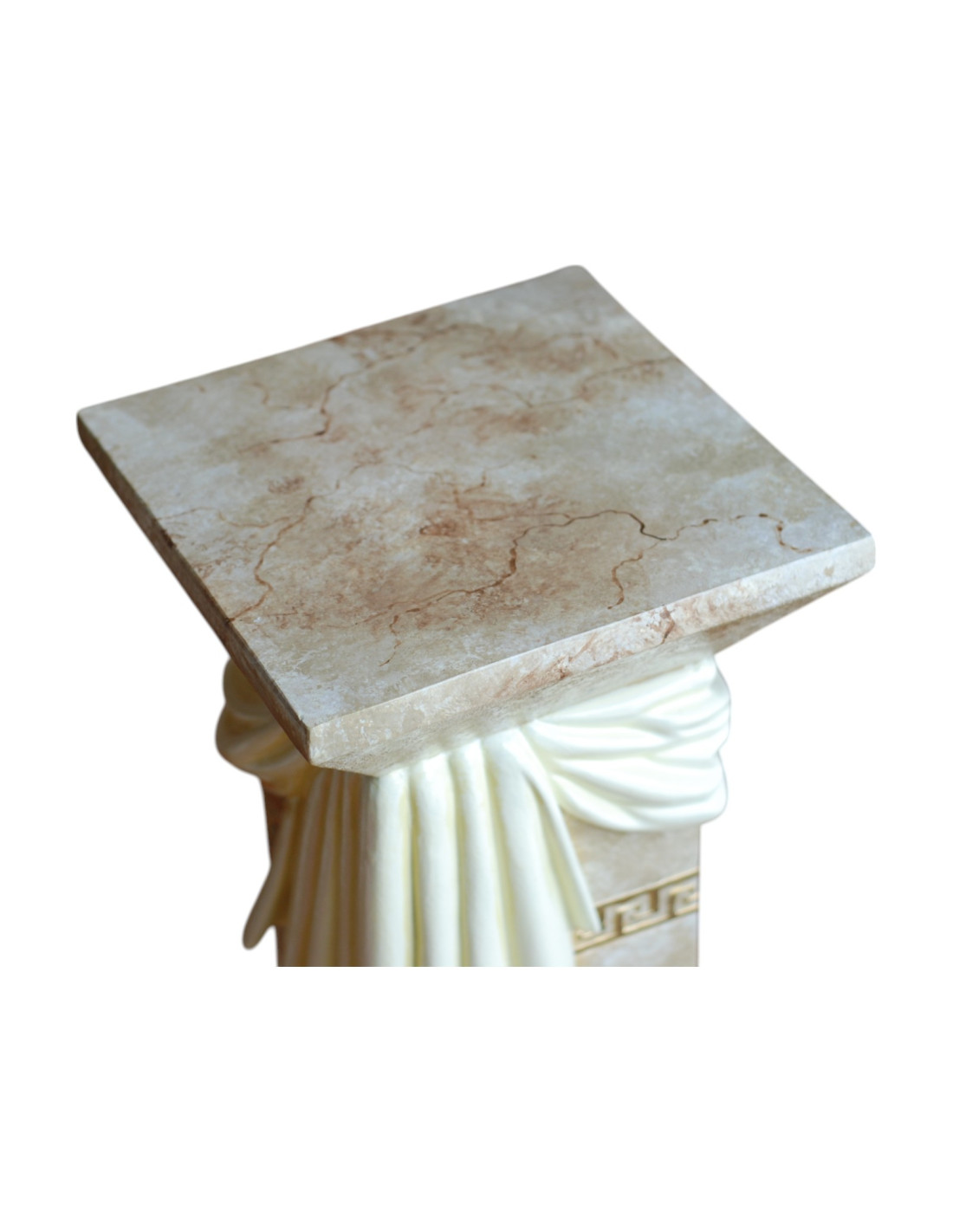 Grecka kolumna ala marmur z ozdobną szarfą i złotymi wstawkami, H:0,8m