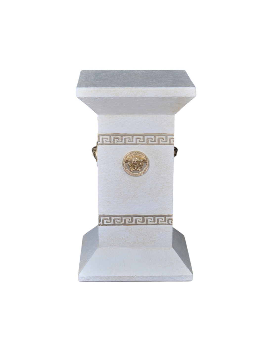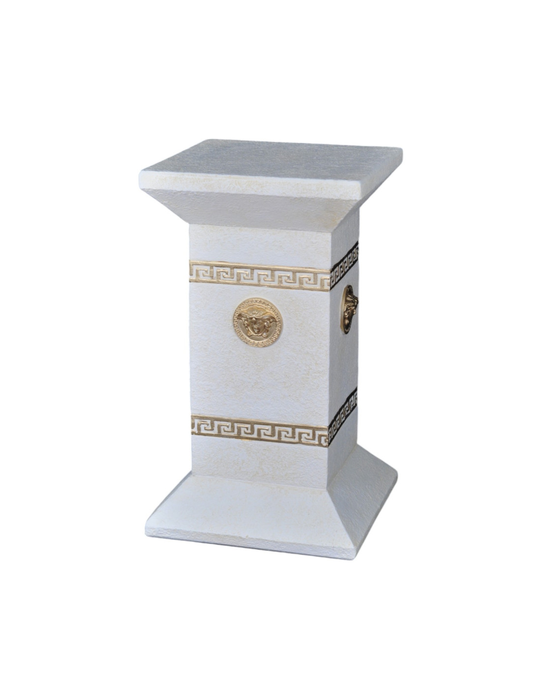 Elegancka biała grecka kolumna z ozdobnymi talarami i złotymi wstawkami, H:0,55m