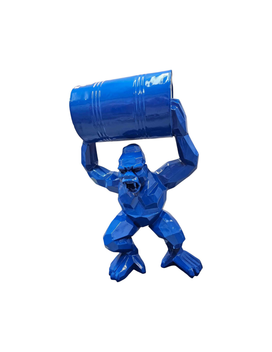 Figura Goryl Low-Poly z beczką niebieski wysoki połysk żywica