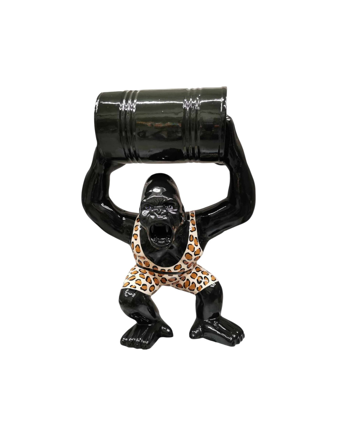 Figura Goryl z beczką Pop-Art Animal Print czarny wysoki połysk żywica