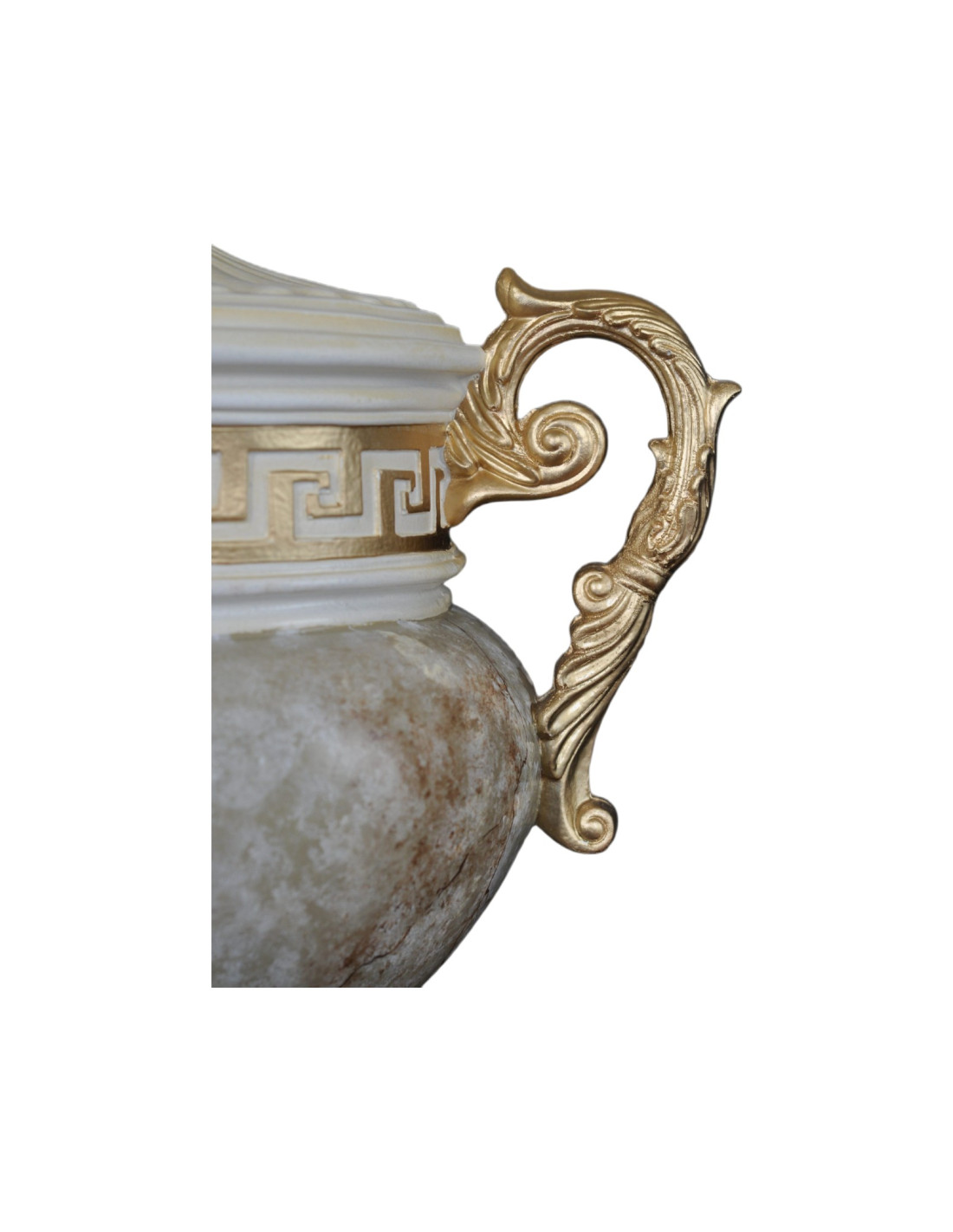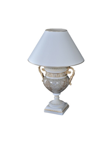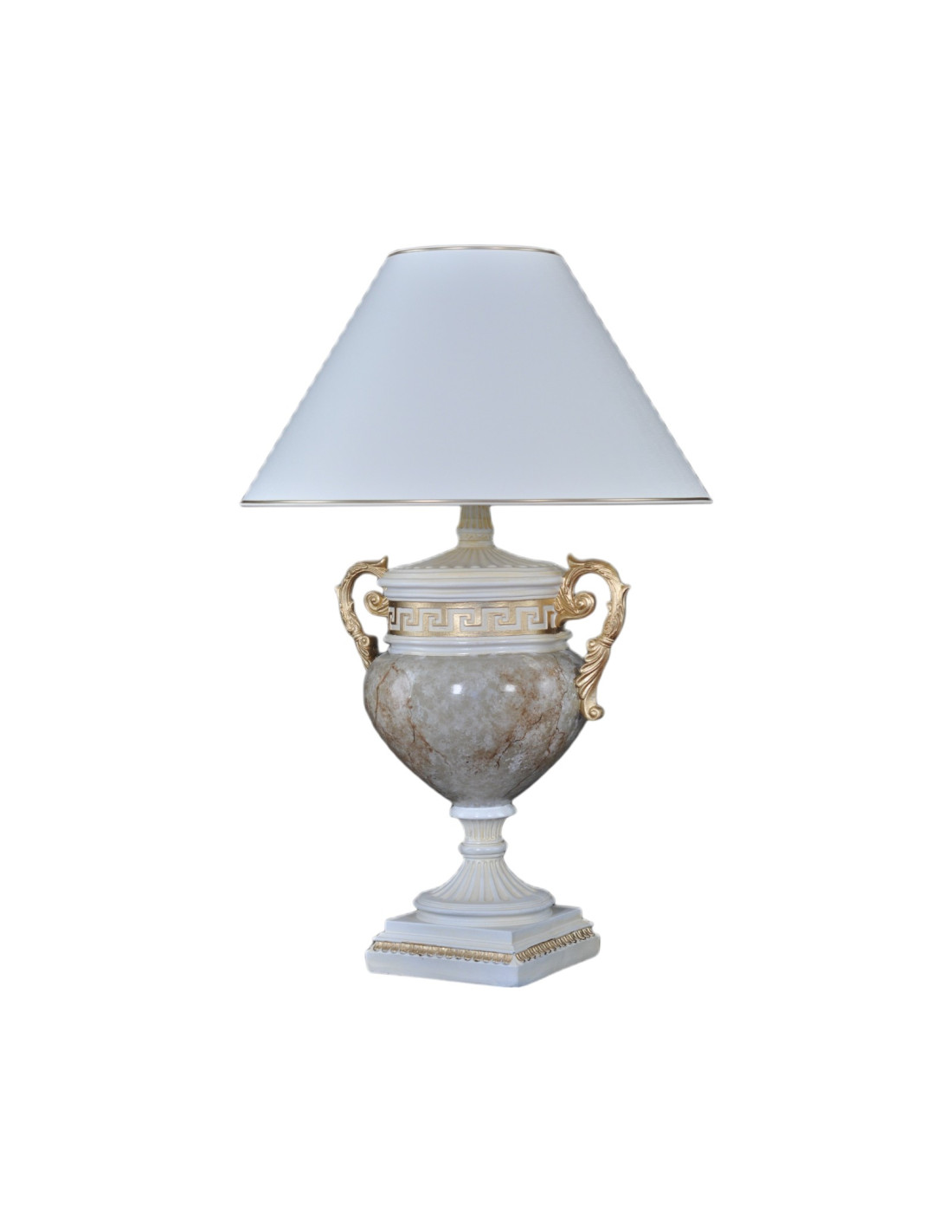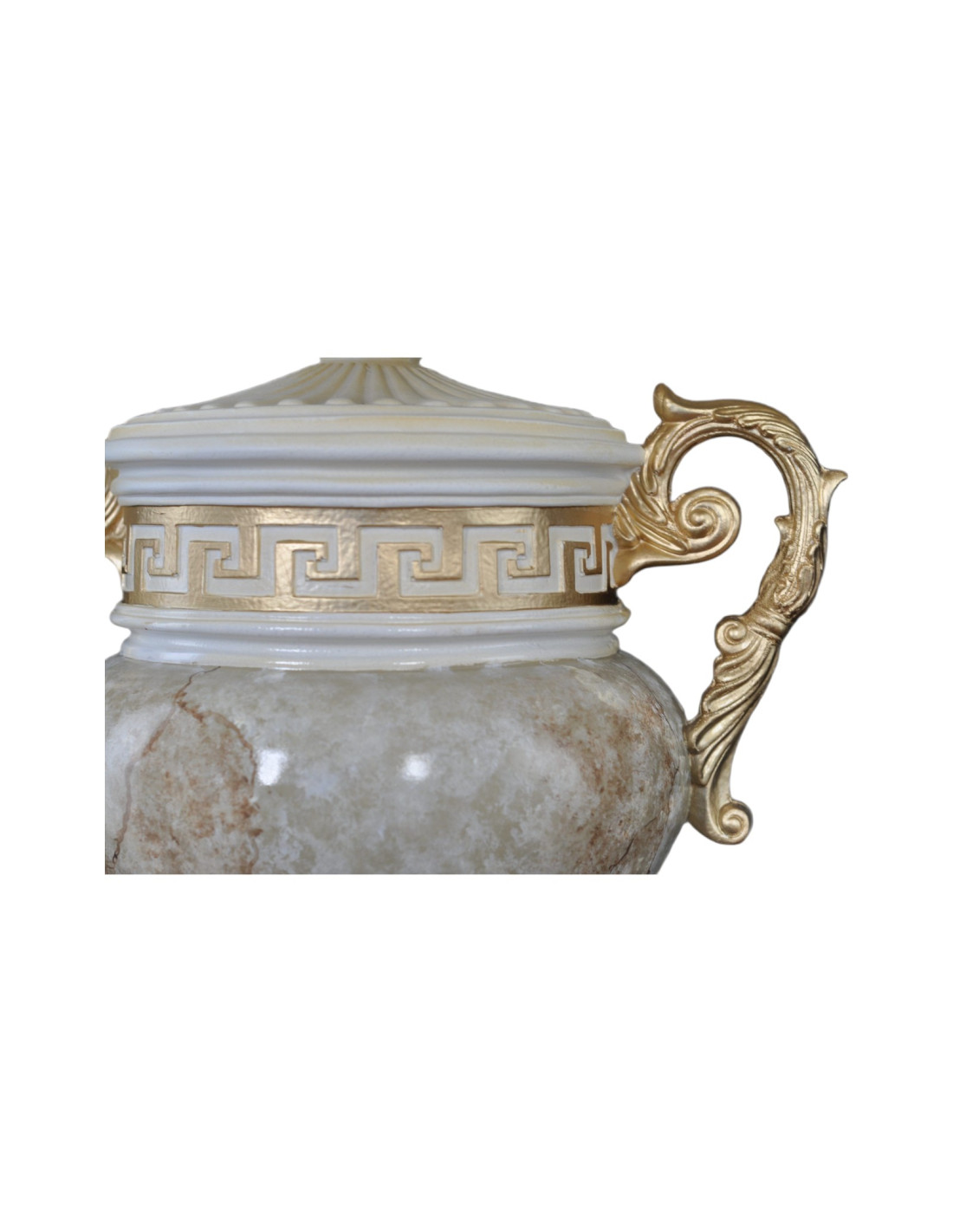 Lampa a'la marmur w kształcie jasnej amfory ze złotymi wstawkami, H: 0,8m